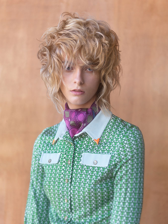 The collection, which is clearly vintage-inspired, recalls the London spirit of the 70s and 80s with youthful looks that evoke classic mullets, although they look very contemporary too.