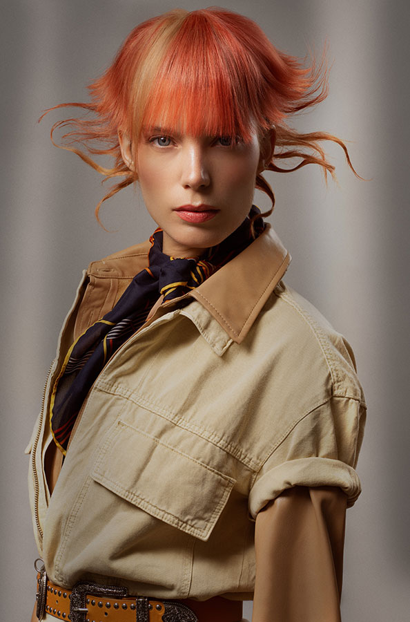 All this is reflected in surprising looks that don't go unnoticed, but rather show new femininity full of energy and eagerness to express. Tones are more or less distant from naturality, alternating oranges, platinum, red, violet, and champagne. Haircuts explore textures, blending or showing compactness. The result offers looks full of modernity and future.