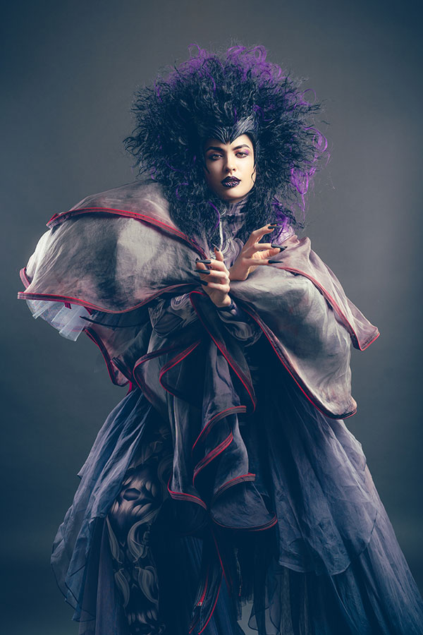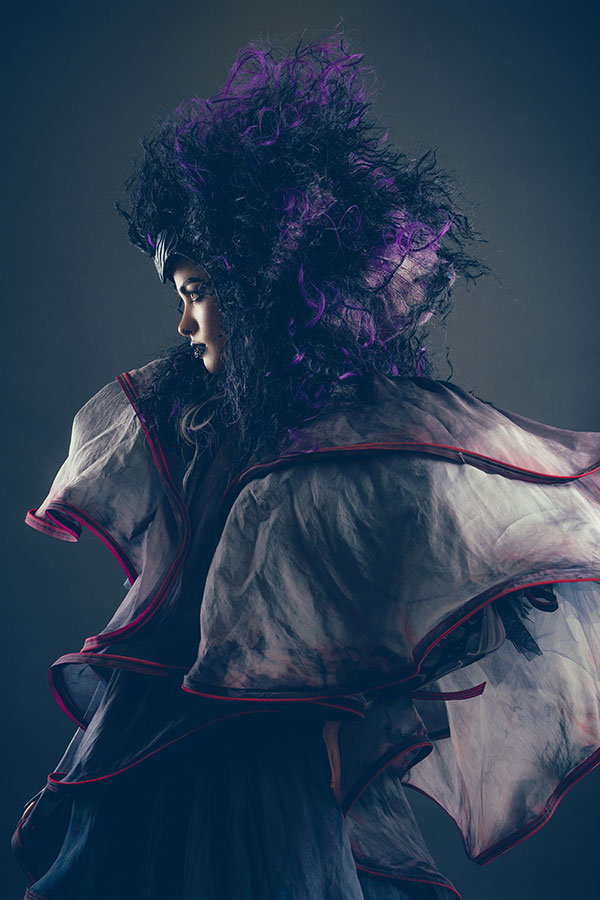 “To love is to suffer. To avoid suffering, one must not love. But then one suffers from not loving”, wrote Woody Allen. The expression of love is not done only through sweetness and joy. Sometimes it is also accompanied by pain and suffering. The inner world, once brilliantly lit, darkens and fades away like an eclipse. This is the theme that Ryuta Tomono had the hardest time reflecting on, as he tried to express a whole different aspect of love. The woman experiences another facet of falling in love – the pain, as if she were waking up from a sweet dream, an eclipse that suddenly envelops the light of day in darkness. It's something unimaginably dark, although it makes her evolve as a person. The facade is made in an image of a stone sculpture. Retaining its coarseness, the stone's surface creates a sense of massiveness and visual darkness. Behind the facade, her black and purple hair is boldly styled like a flame, expressing deep darkness and pain.