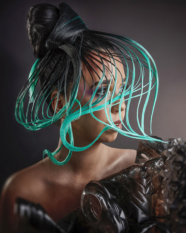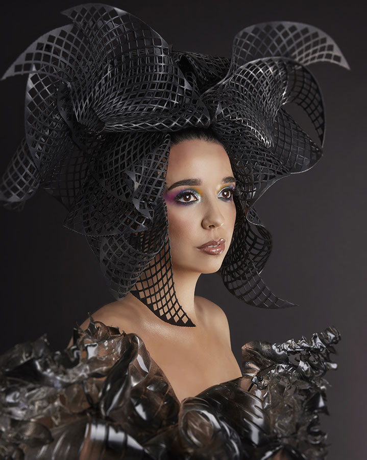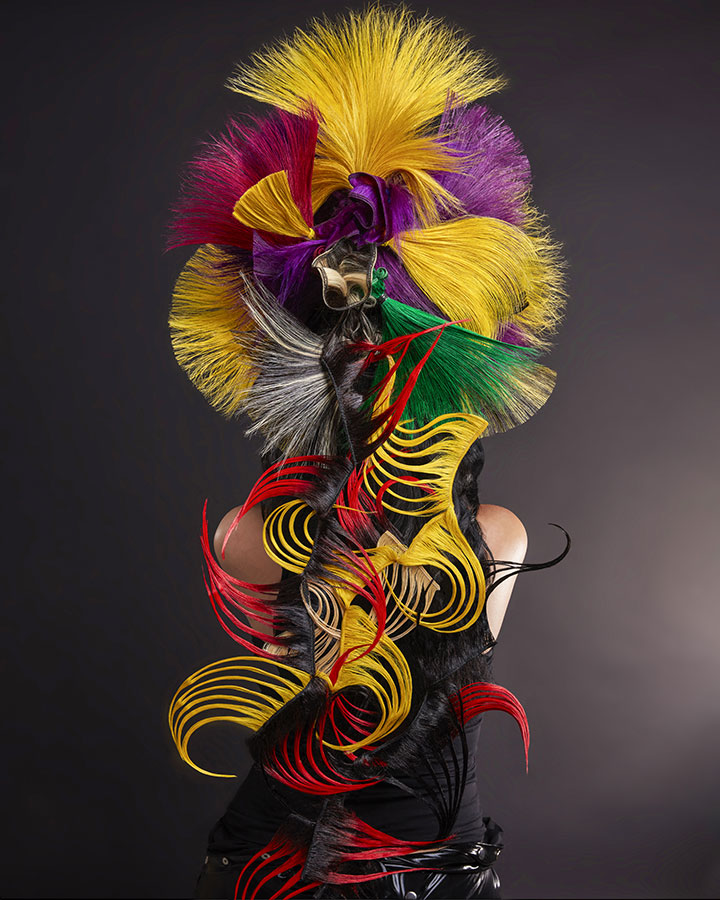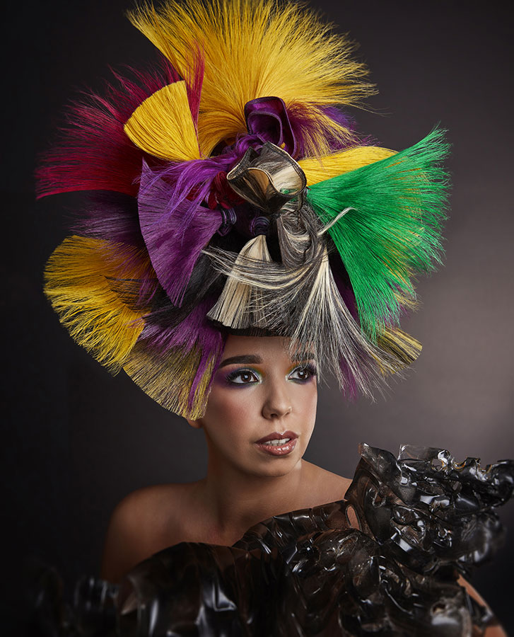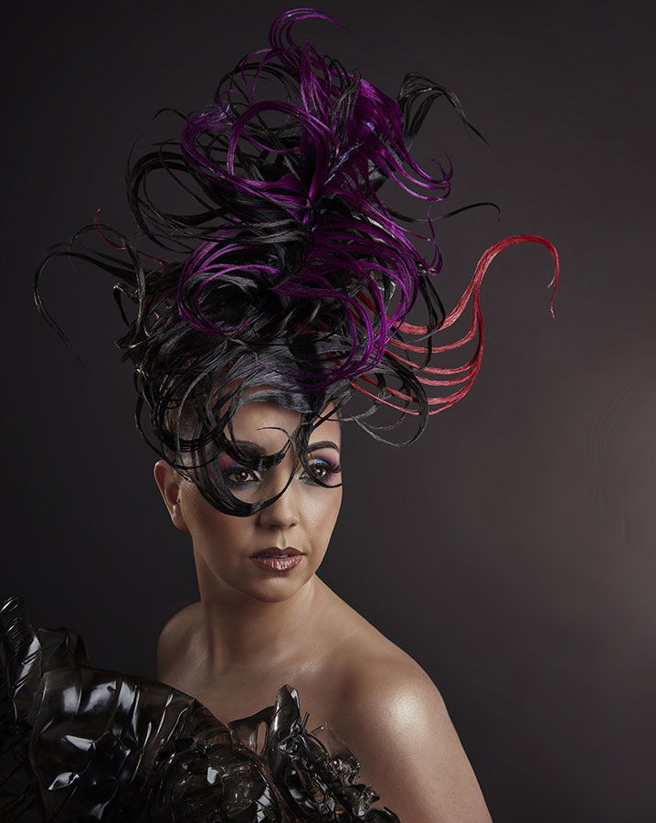 For his Avant Garde Collection, Fantail, William Gray from Grays International in Airdrie created four different looks using a hat shaped base and taking inspiration from larger-than-life hats and ornate head-ware. All the pieces were individually made and then placed on the base to create the avant garde shapes.