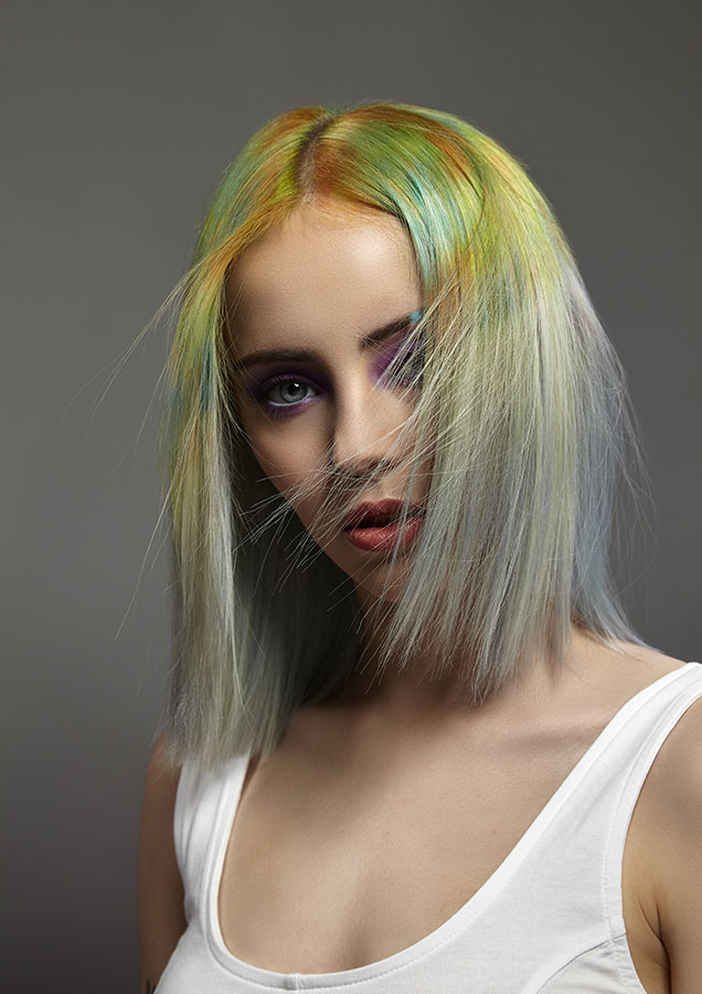 An image from my recent collection, SMUDGE, this look is perfect for those wanting to experiment a little more and try something completely different. Using sponges, the colours were blended together by simply smudging into one another. This freehand technique really allows you to get creative and the hair truly becomes your canvas.