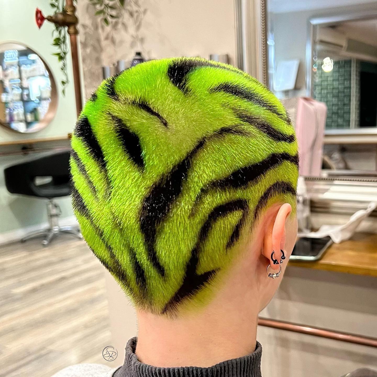 What better way to embrace your own individual style, than creating beautiful patterns on the hair. Working with a global application on the base, the pattern is simply freehand painted onto the hair, bringing your canvas to life. For me, this gorgeous green was the perfect base – it’s bright, bold and such an individual colour.