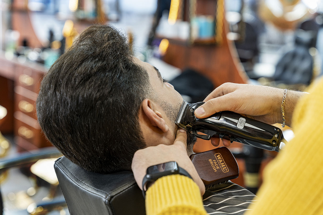 - Using the WAHL SUPER TAPER and an open blade set, create a perfect skin-to-hair transition at the neck area.