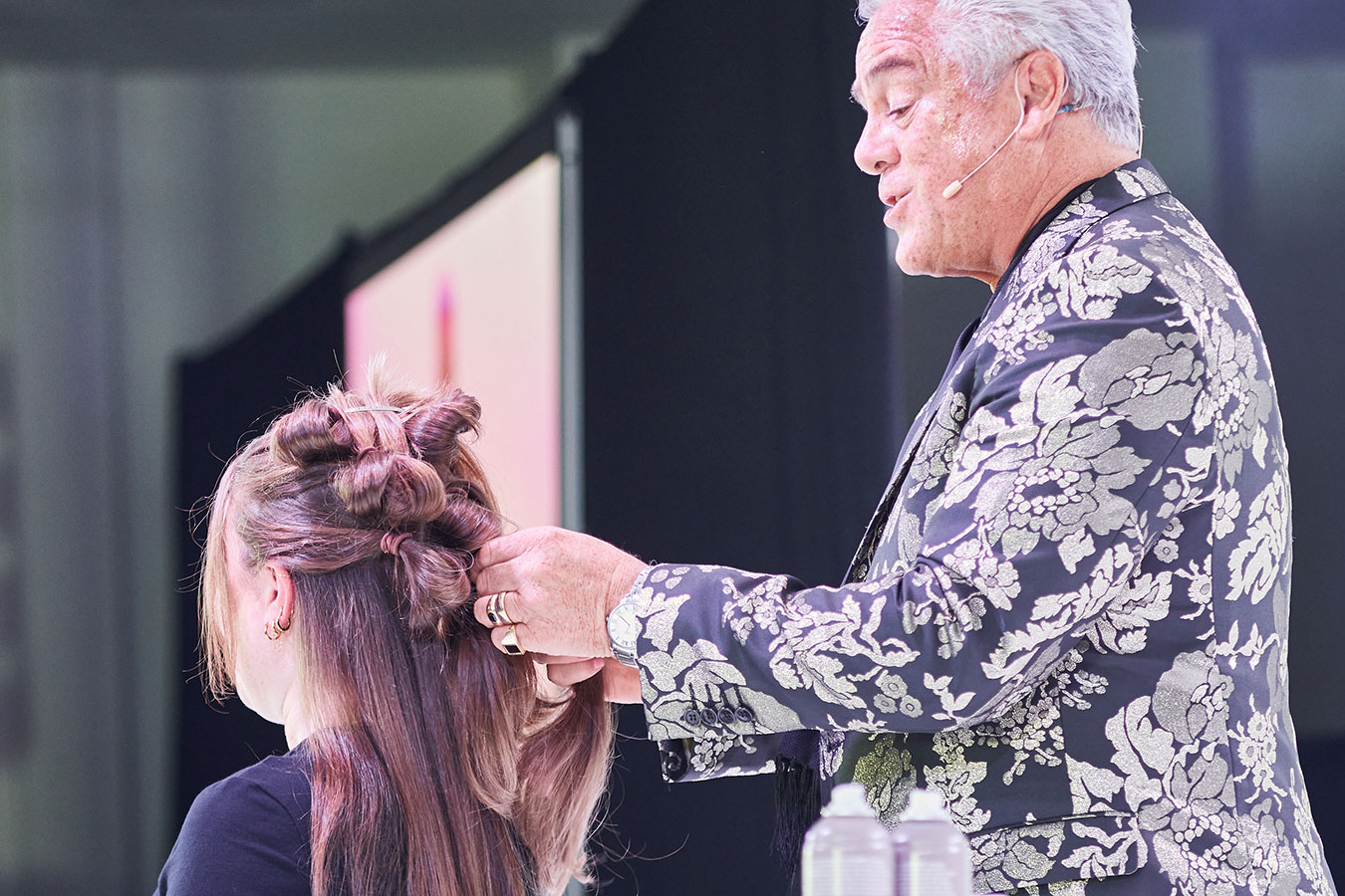 Having earned an MBE during the lockdown period for his dedication to empowering education, Patrick’s live presentation brought the best of his step-by-steps from the screen to the stage, for a showcase of both trend-led and timeless hair up looks.
