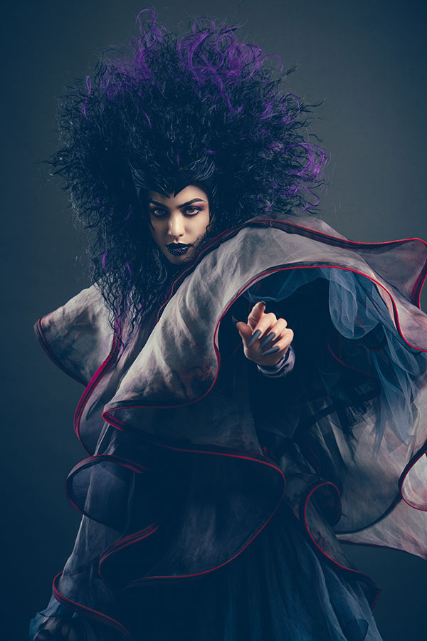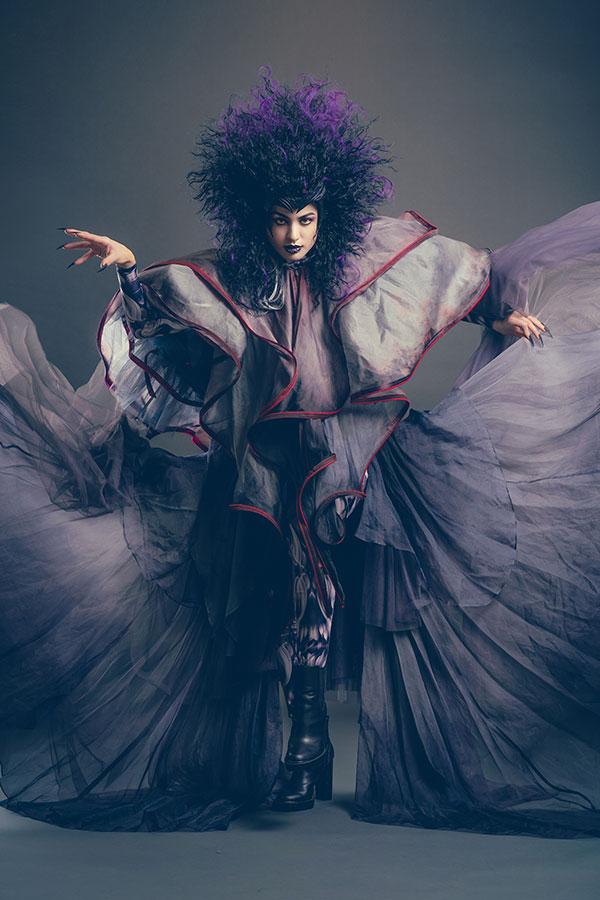 “To love is to suffer. To avoid suffering, one must not love. But then one suffers from not loving”, wrote Woody Allen. The expression of love is not done only through sweetness and joy. Sometimes it is also accompanied by pain and suffering. The inner world, once brilliantly lit, darkens and fades away like an eclipse. This is the theme that Ryuta Tomono had the hardest time reflecting on, as he tried to express a whole different aspect of love. The woman experiences another facet of falling in love – the pain, as if she were waking up from a sweet dream, an eclipse that suddenly envelops the light of day in darkness. It's something unimaginably dark, although it makes her evolve as a person. The facade is made in an image of a stone sculpture. Retaining its coarseness, the stone's surface creates a sense of massiveness and visual darkness. Behind the facade, her black and purple hair is boldly styled like a flame, expressing deep darkness and pain.