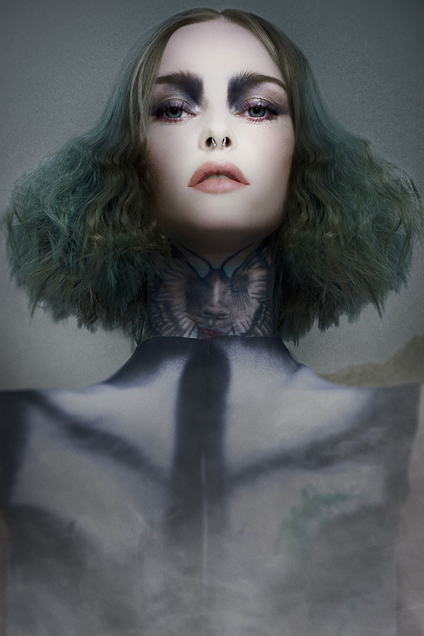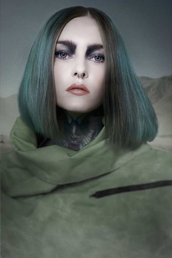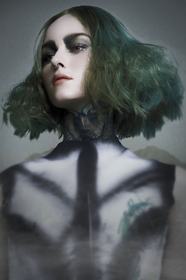 The work in terms of colour seeks to align concepts and materials to adapt to the shape and volume in order to enhance the textures and aesthetic line of each look. Emerald colours, darkened copper, gradient browns or bluish greys.