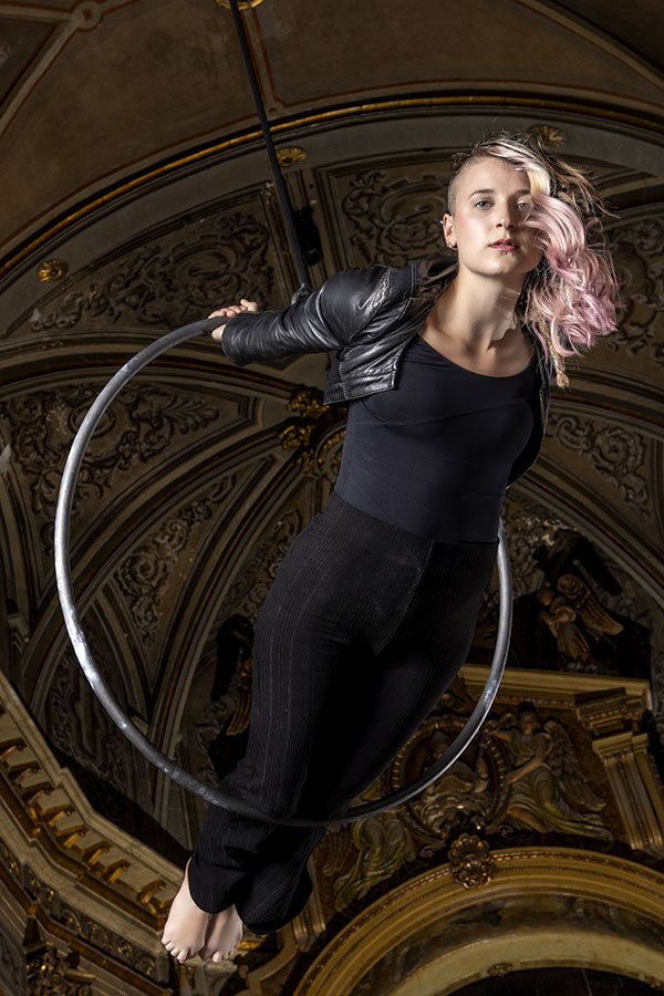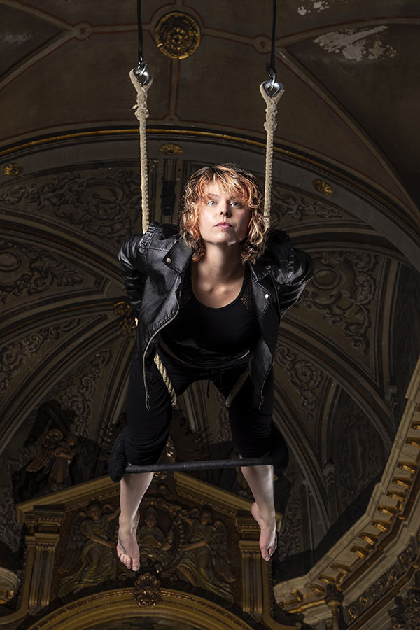 Through this original way, in the setting of a baroque church and on trapezes and ropes that take them away from the earthly, the ECLÉCTIKA acrobats take to the aesthetic world the deepest concept and full of femininity, the one that contemplates a series of intense contrasts that melt with each other. In the case of ECLÉCTIKA, they do it in unimaginable degraded and antagonistic shapes joined in a whole.