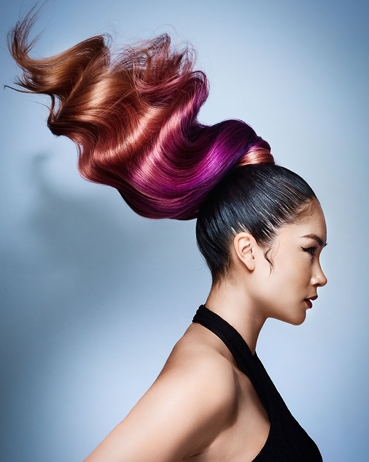 Eclectic refers to a style or approach that combines different elements from different sources or styles to create something unique and diverse. It can also refer to a person who has a wide range of interests and tastes. In the context of the original question, eclectic describes the combination of edgy hair with flowing color accents that create a unique and diverse look. Sevda has done exactly that creating beautiful, individual looks on each different model – each with their own expression, telling a story.