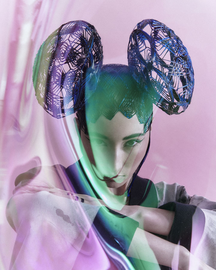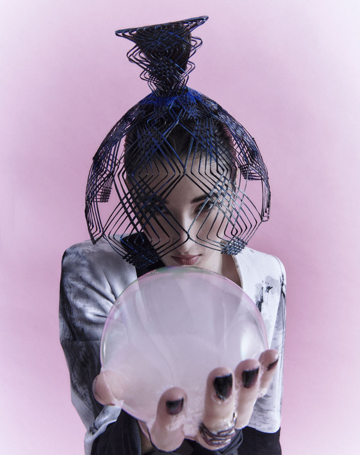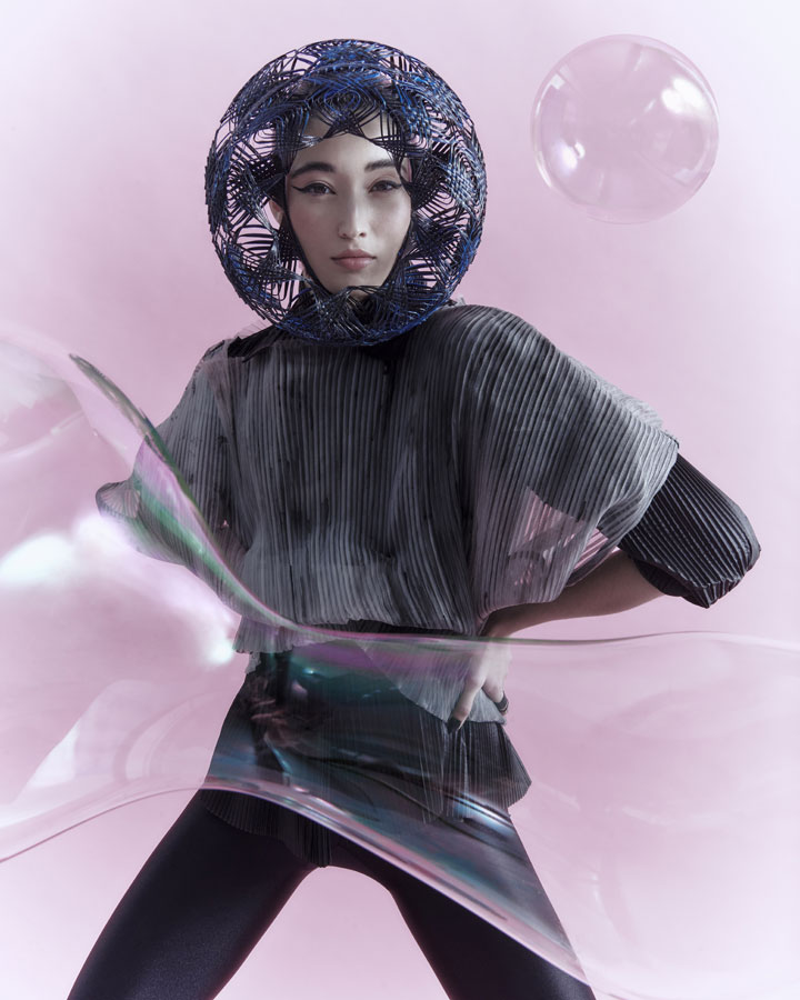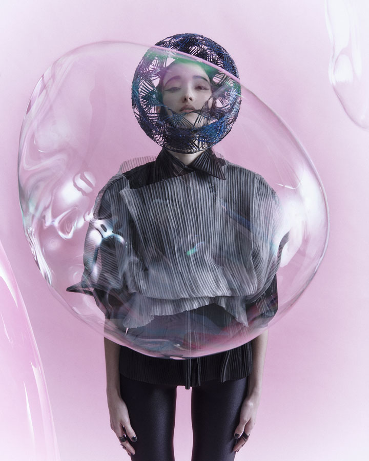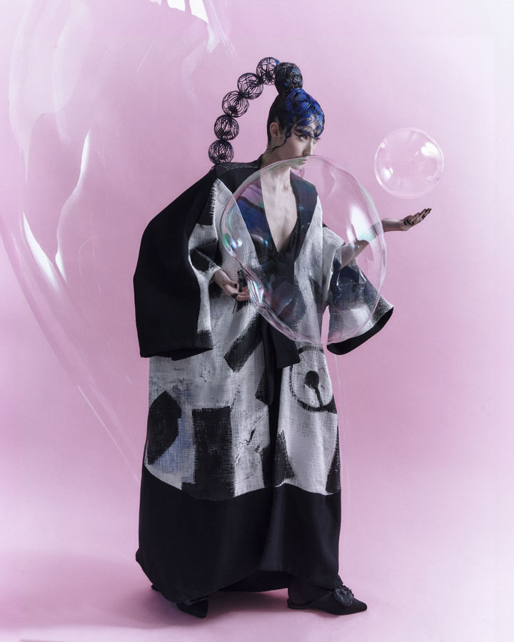 Is characterised by its elaborate structure based on the firm's renowned artisanal technique, which has been given a more three-dimensional and aerial character with wefts and interweaving without fastening. The creation process is completed with the interpretation of the typical ornaments of the numerous nihongami styles on the same hair and with the same techniques.