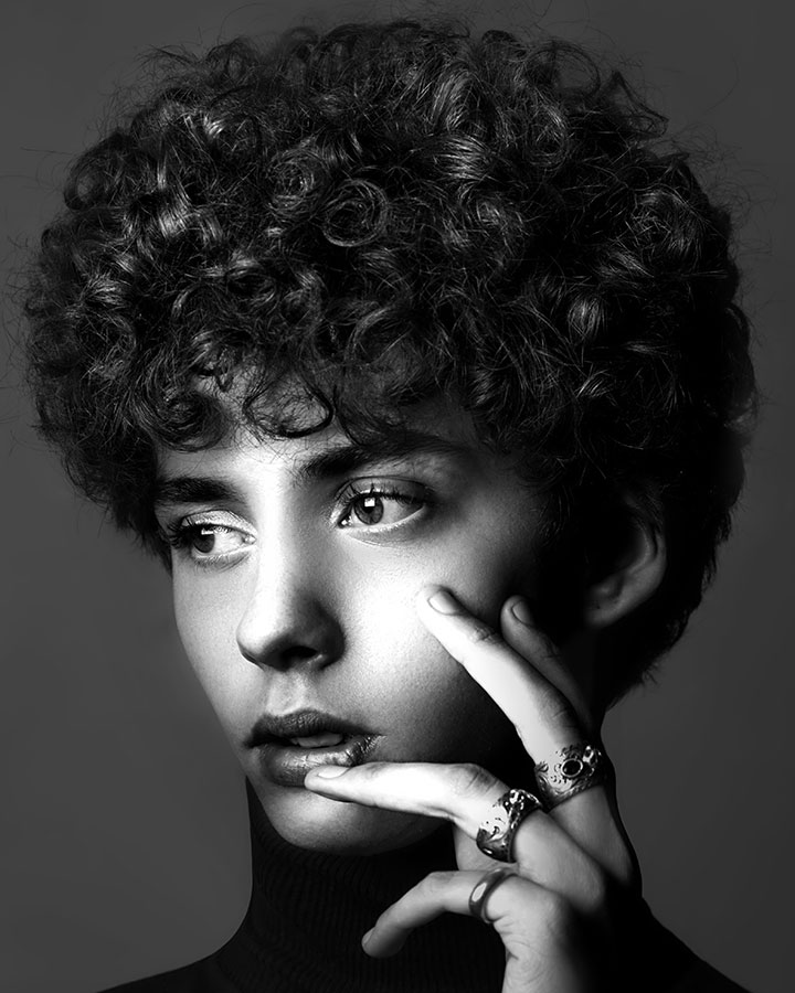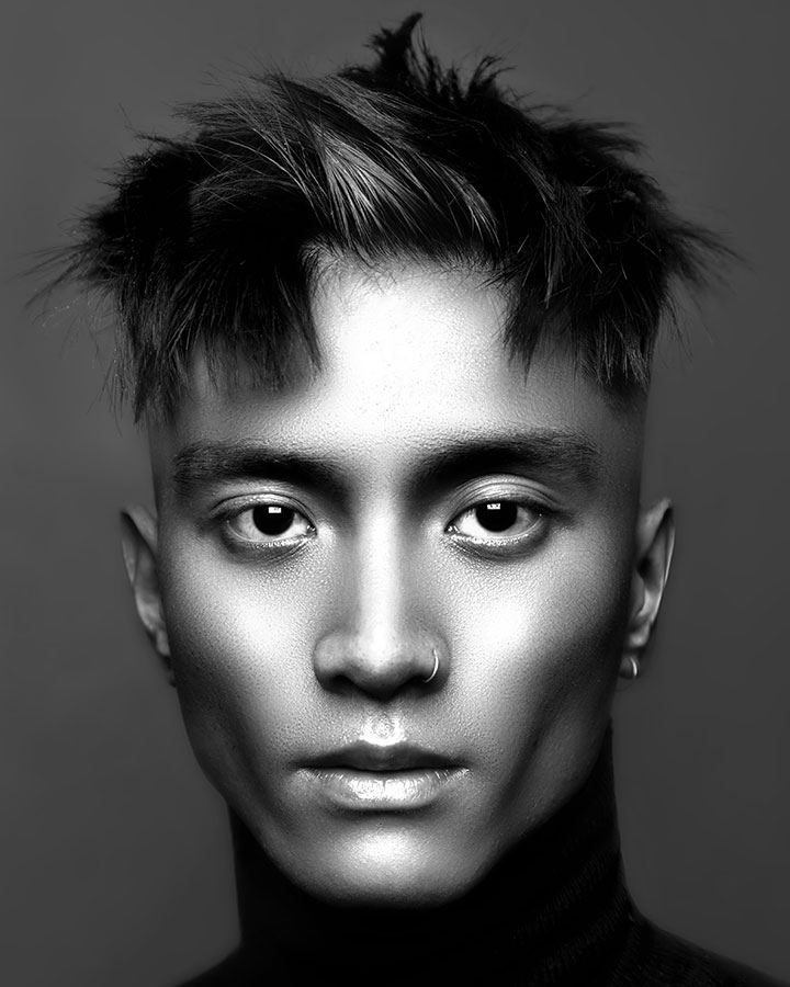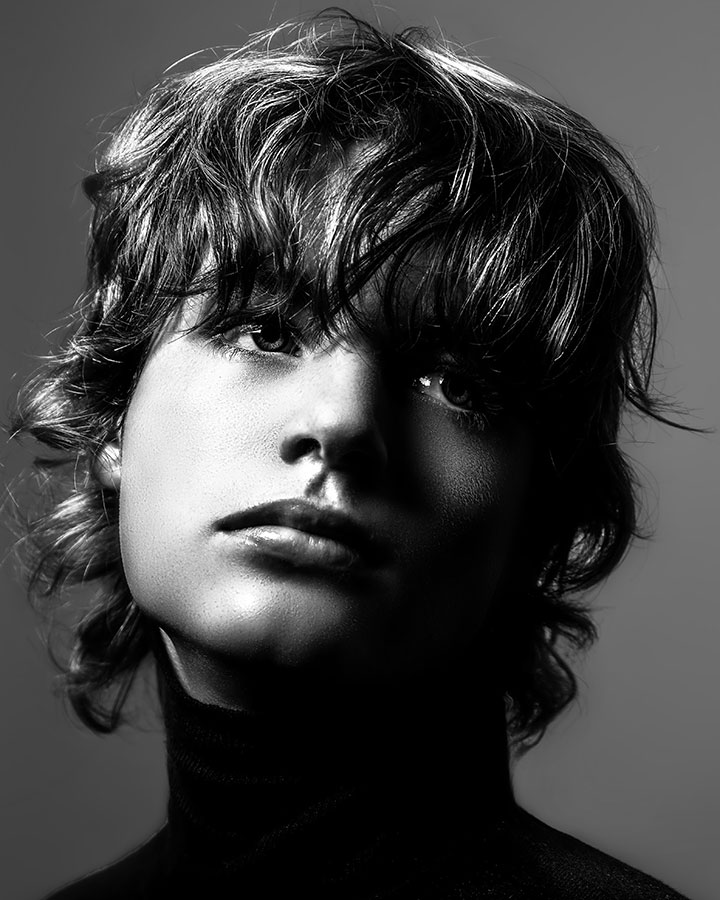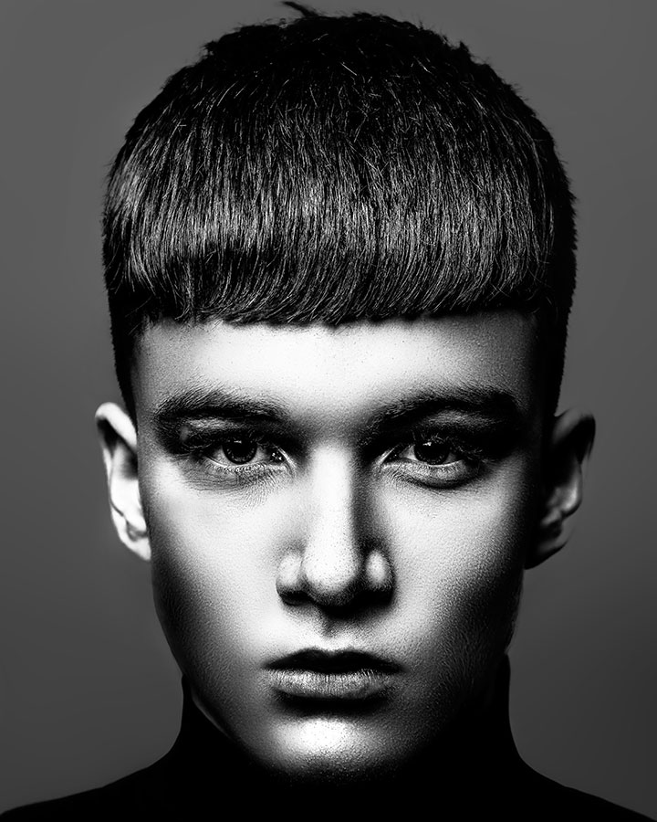 This Collection gives a nod to David Bailey with his classic old school Black & White lighting with a contemporary twist. The Hair is an amalgamation traditional, skin fade, graphic cuts and soft textures. Then enhanced with styling products to create bold finish.