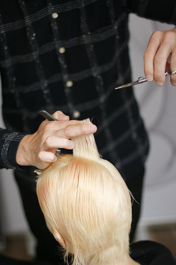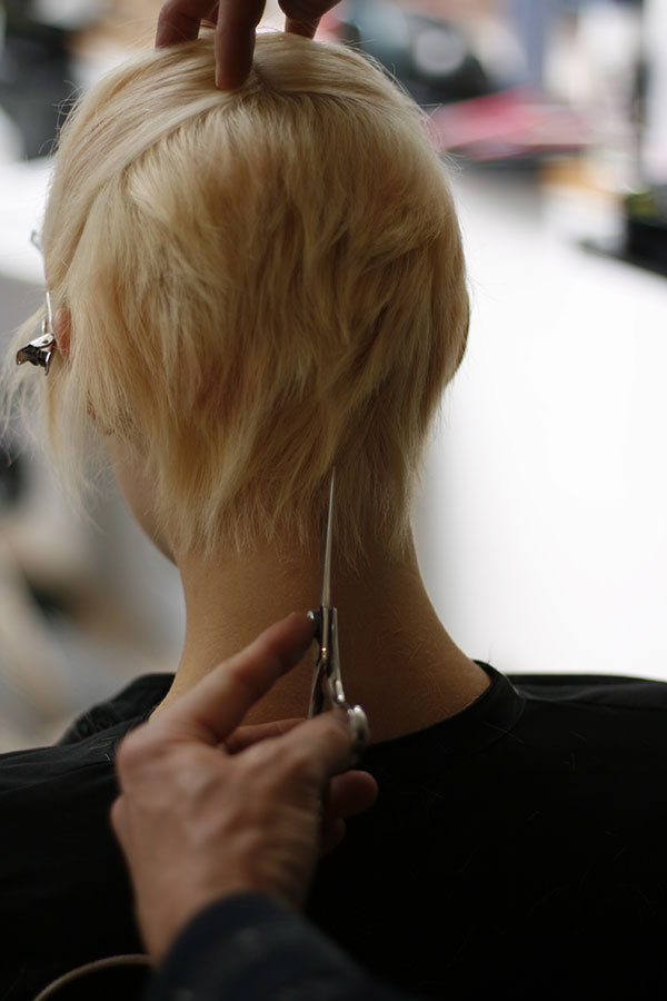 11. The hair is elevated up and out form the head and a slim layered guideline is cut, that follows the natural roundness of the head.