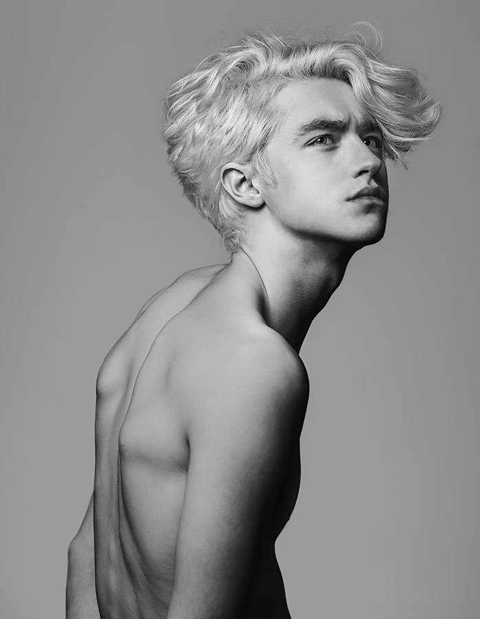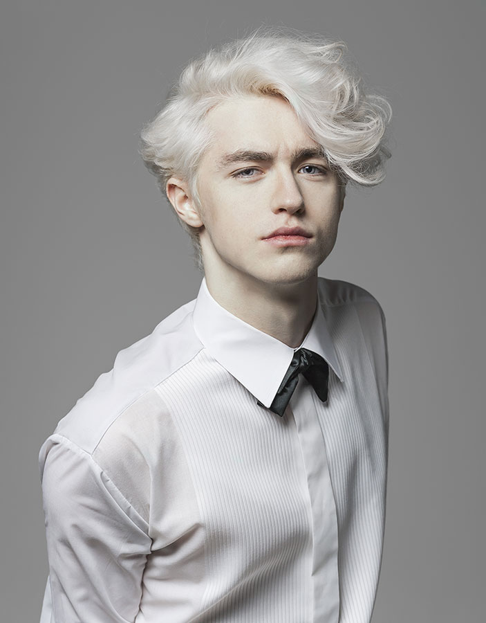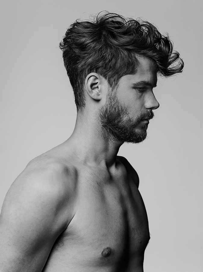 Stag created ‘the naked and the dressed’ to demonstrate the versatility of hair. The black and white images showcase the hair in it's most natural form - no product was used and the only tools used were a vent brush and hairdryer. Stag wanted to accentuate the effect of a good quality haircut on hair, free from any distraction. This is further emphasised by having the models shirtless - the end result is a raw, primitive image. By contrast, the coloured images are highly stylised both in terms of hair and dress. Stag wanted to emphasize the difference styling can make to a haircut or a person's look. They used Davines pomade and matt clay to create the polished look, and dressed the models in tailored suits from Stewart Christie, Edinburgh's oldest tailor. The result is a collection of contrasts - which celebrates the unique and unpredictable nature of hair.