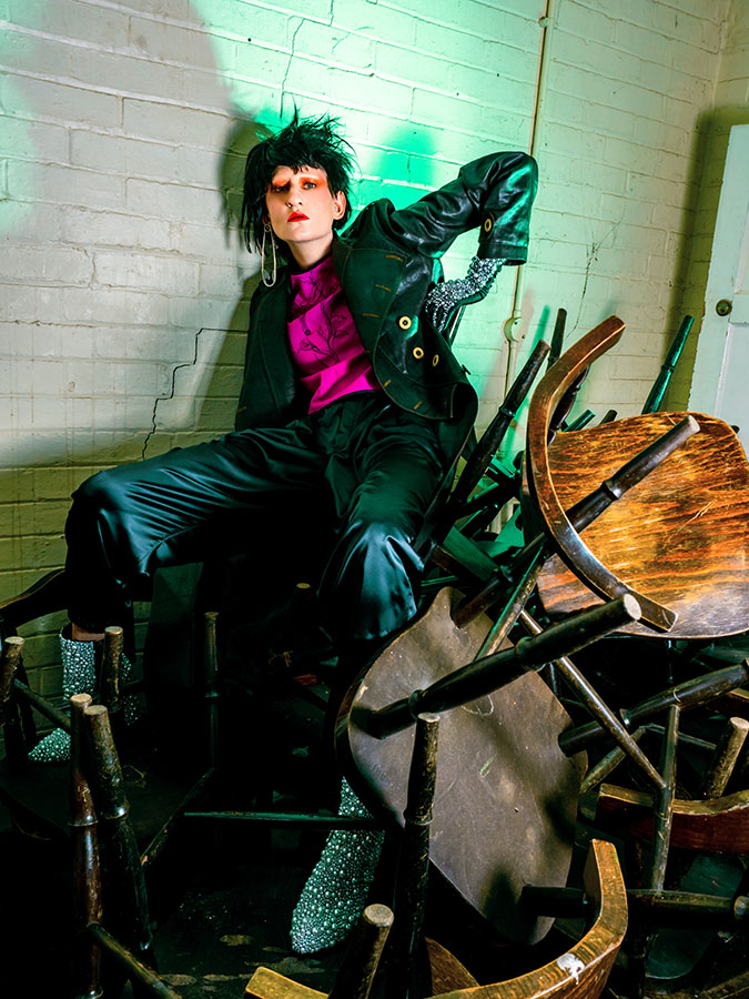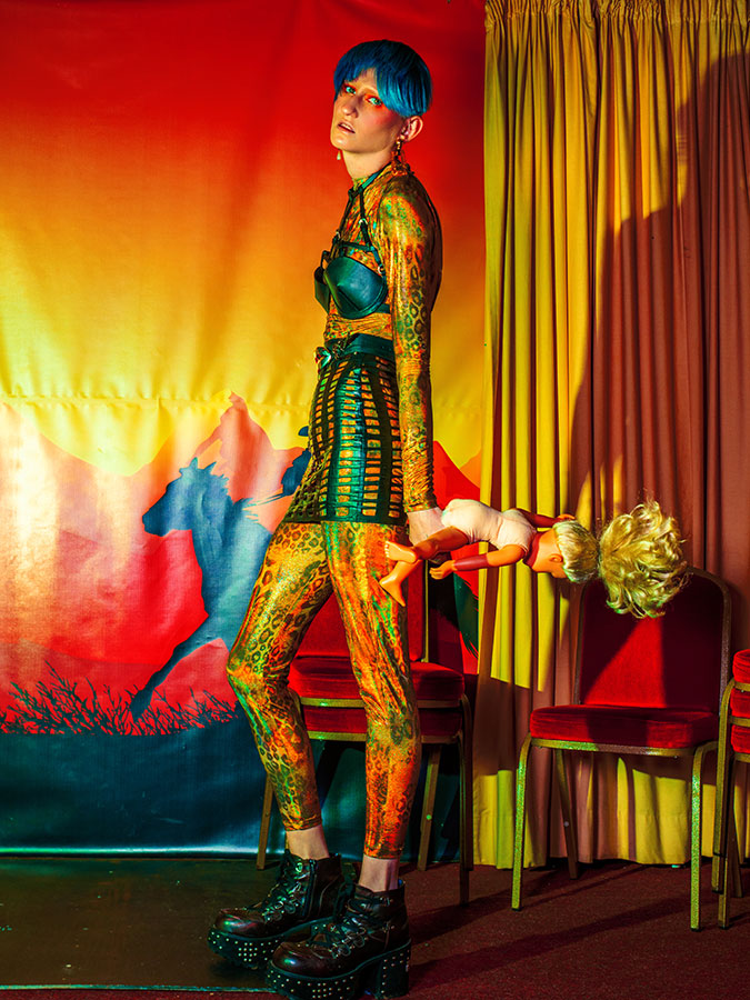 Inspired by 1970s glam rock, I really wanted to capture the reality of the Bohemian 21st Century backstage scenes. With glitter, platform boots and 70s Glam rock make up I feel this collection really reflects the reality of post gig, backstage scene exhaustion.