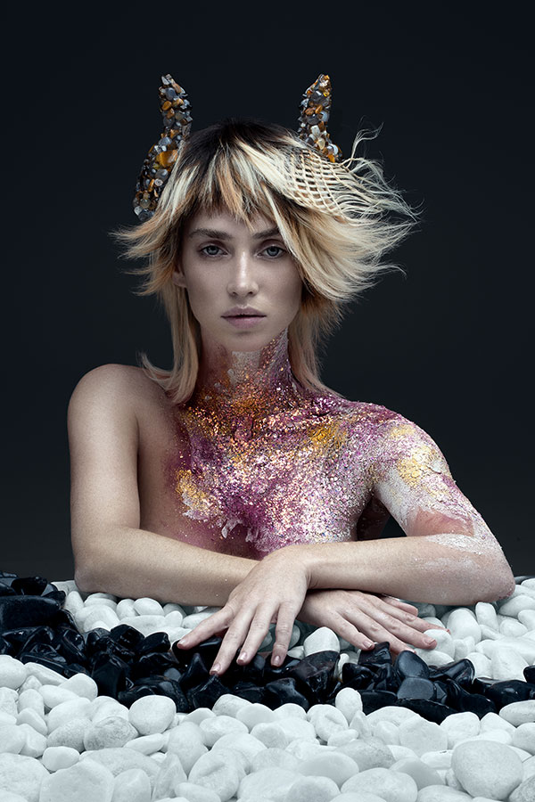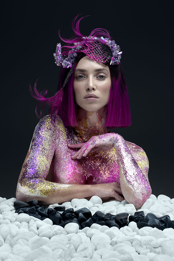 With the appearance of rough rocks, the geodes hide within them precious crystalline formations. They can go unnoticed at first glance and to find their true beauty you have to discover their interior. For this reason, these images reflect the surprising combination of the evolution from stone to gemstone, with details that make hair a luxurious, extraordinary object, which emerges before our eyes to marvel us with its vivid tones and its capricious forms as in nature.