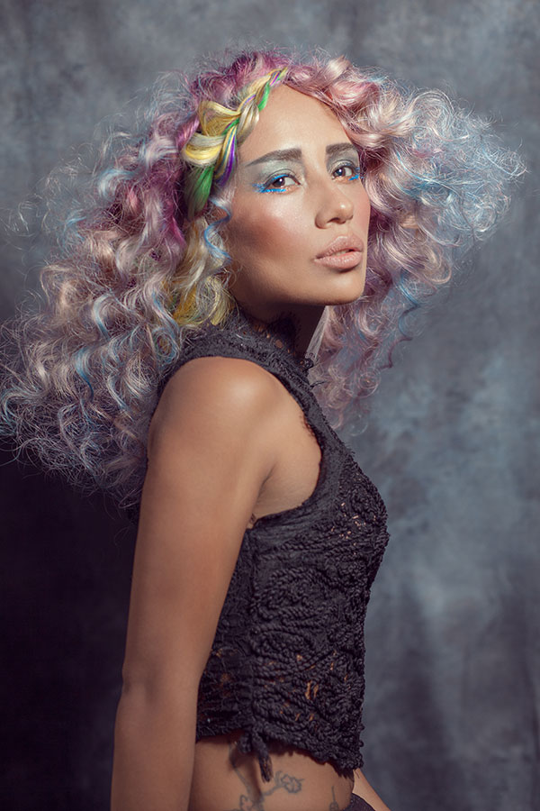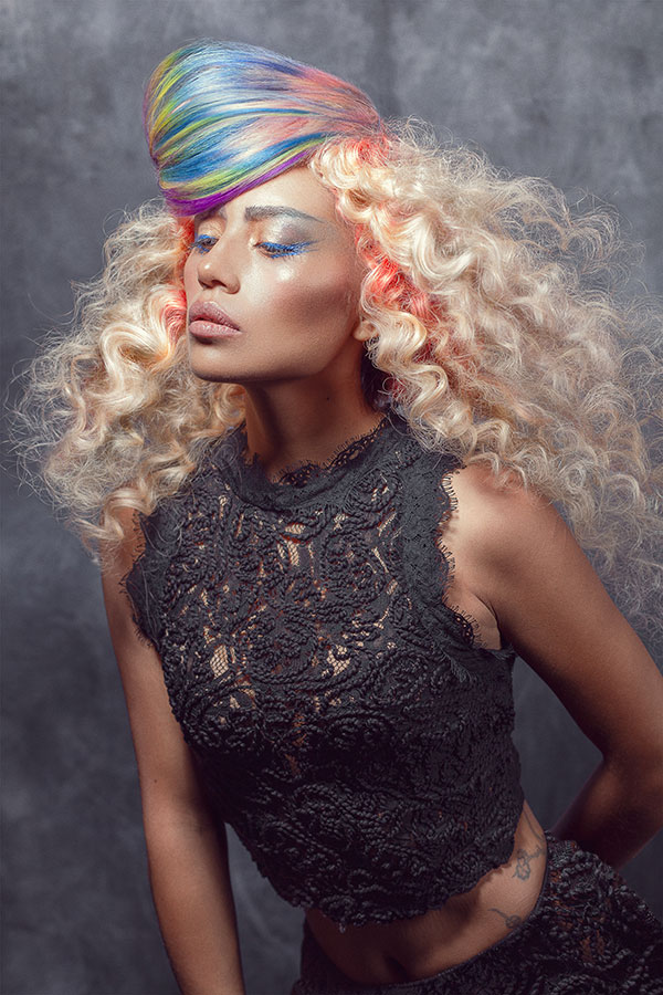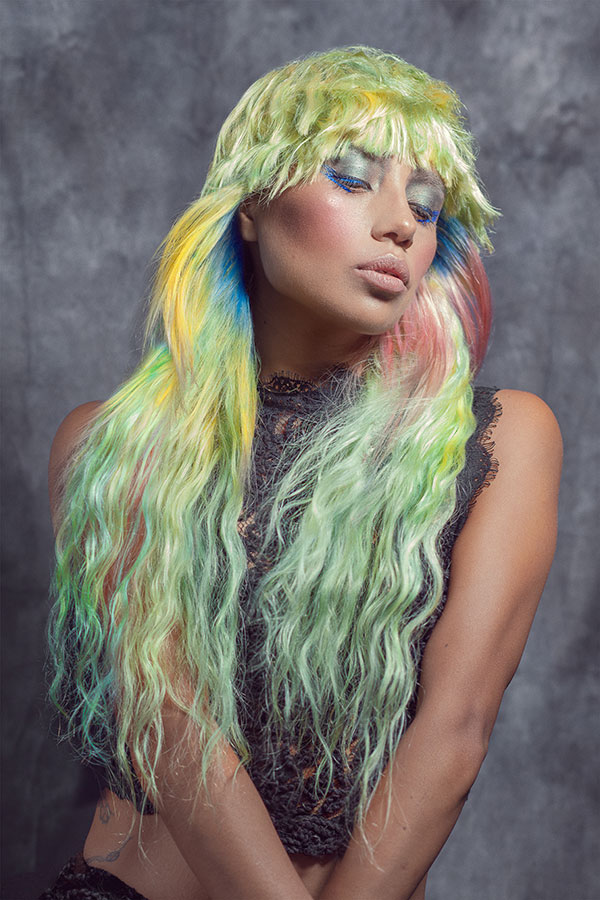 On hair, textures are combined with a strong preeminence of waves and curls that acquire even more strength with the application of the different tones. Hair simulates the softness with which algae sway with currents, the fluffiness of the most exotic bird feathers and the palette of colors that appears in the sky when the daylight fades.