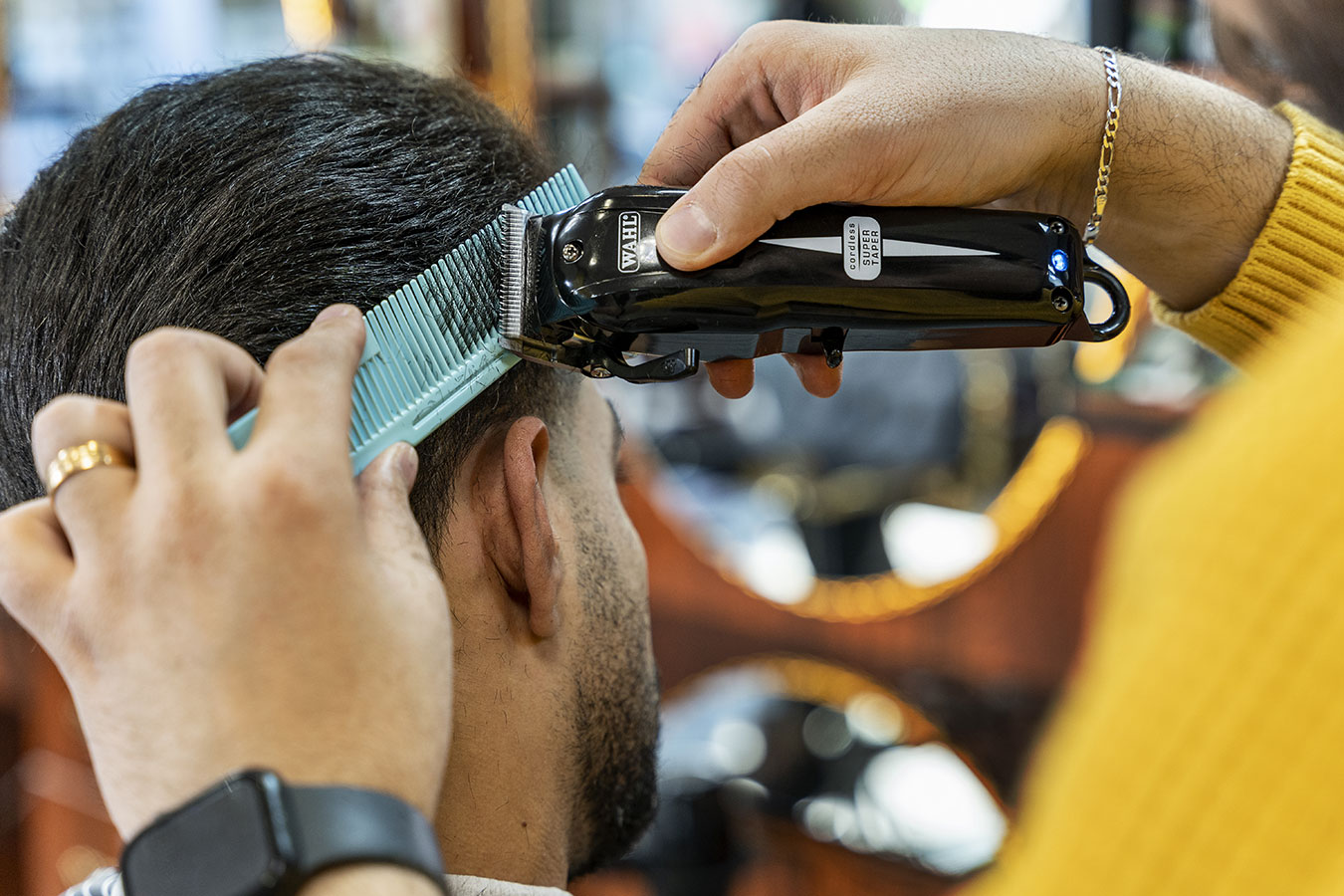 - Using the WAHL SUPER TAPER and an open blade set, create a perfect skin-to-hair transition at the neck area.