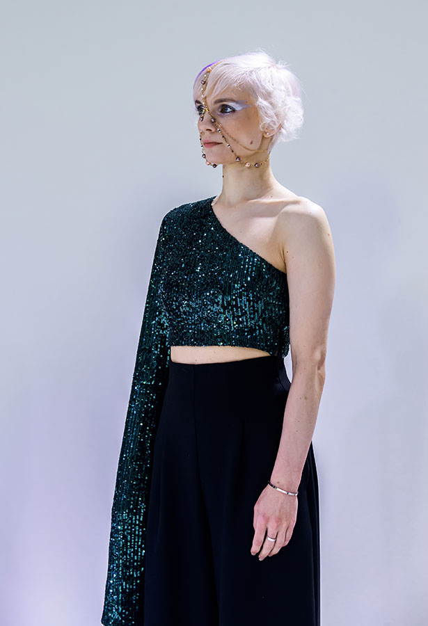 Further inspiration came from the conceptual fashion designer Sharon Ezra, whose label Wilde Vertigga takes an experimental approach that highlights the harmony between asymmetric shapes and imperfection, inspired by the non-conformist thinking of Oscar Wilde.
