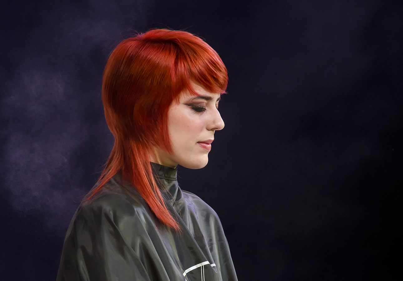 These decidedly off-kilter themes were translated into hair through sections that were purposefully off centre, long-to-short disconnection, and detailing that felt intentionally DIY, with finished looks including trademark Mahogany crops and bobs and the eternally in-demand mullet and shag shapes – a great way for clients to maintain long hair, while still providing interest and individuality.