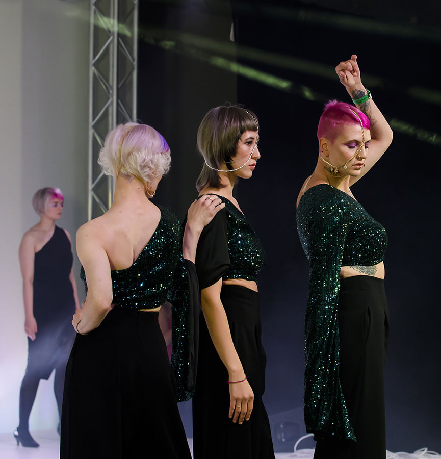 The team presented nine models in total with looks featuring internal offset layering techniques, sporadic texturising and internal disconnection, for highly individual styles that heroed their model muses. “We create looks based on personality and preference,” said Creative Director, Neil Atkinson. “Ultimately, that’s what matters.”
