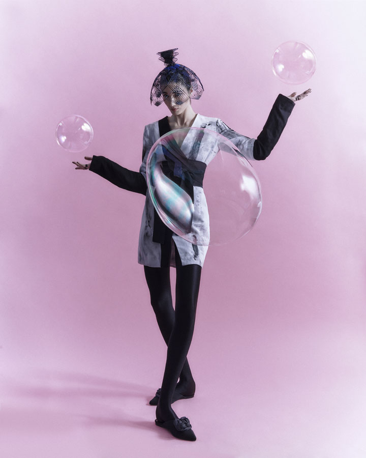 Is characterised by its elaborate structure based on the firm's renowned artisanal technique, which has been given a more three-dimensional and aerial character with wefts and interweaving without fastening. The creation process is completed with the interpretation of the typical ornaments of the numerous nihongami styles on the same hair and with the same techniques.