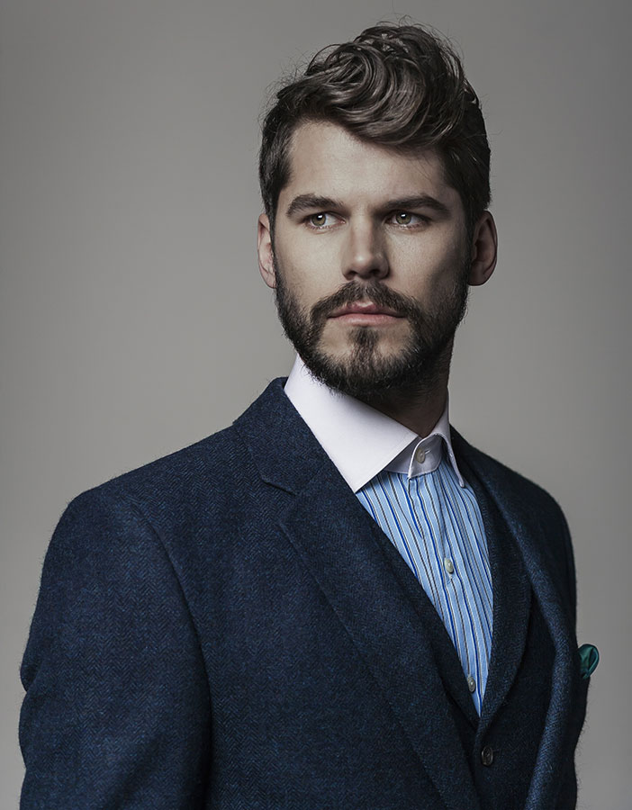 Stag created ‘the naked and the dressed’ to demonstrate the versatility of hair. The black and white images showcase the hair in it's most natural form - no product was used and the only tools used were a vent brush and hairdryer. Stag wanted to accentuate the effect of a good quality haircut on hair, free from any distraction. This is further emphasised by having the models shirtless - the end result is a raw, primitive image. By contrast, the coloured images are highly stylised both in terms of hair and dress. Stag wanted to emphasize the difference styling can make to a haircut or a person's look. They used Davines pomade and matt clay to create the polished look, and dressed the models in tailored suits from Stewart Christie, Edinburgh's oldest tailor. The result is a collection of contrasts - which celebrates the unique and unpredictable nature of hair.