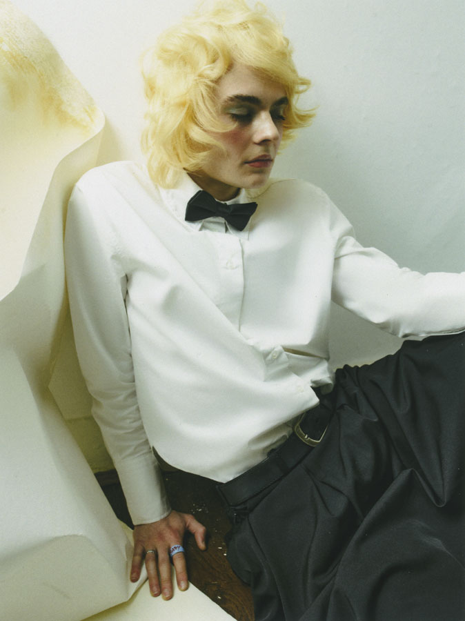 ‘THEM’ marks our first collection as a team, centred on fluidity within shapes and ignoring gender stereotypes. What excites me most about this collection is that we’ve captured the essence of each model in the shoot. Whether street-cast or agency, each model has their own unique style, and although we were guided by a concept, it’s the models who brought their own energy to the shoot.’